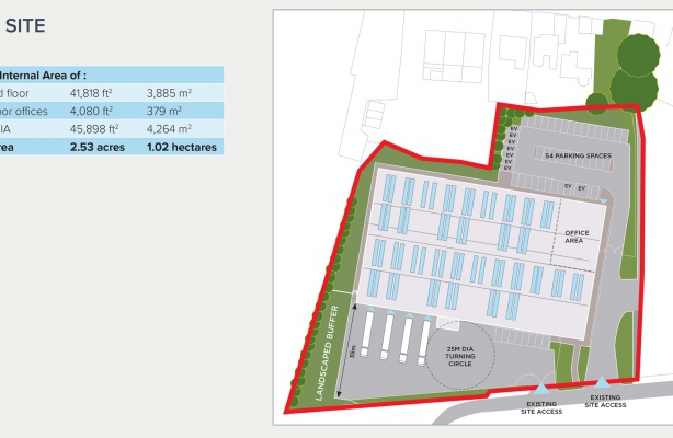The property, which is a development by Morris Property, will provide a modern, detached distribution/industrial warehouse facility on a secure, self-contained site of 2.53 acres (1.02 hectares).The warehouse will be built to a high specification, which is sustainable by design including: